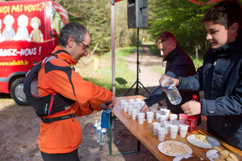 Sur le retour, au passage de la Grange Puton, un bivouac avait été installé à côté d’un feu. Les coureurs avaient droit à avaler la soupe du « poilu ». Une soupe d’ailleurs bien vosgienne avec pois chiches, pommes de terre et lard… Mais le temps d’arrêt n’étant visiblement pas décompté, les premiers groupes de concurrents ignorèrent cet appel de la soupe. Mais leurs suivants ont doublement apprécié !