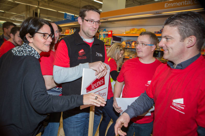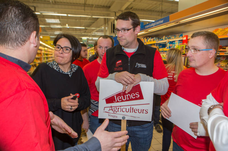 Rue Rualménil, deux veaux de la race vosgienne ont fait sensation chez les plus jeunes, occupés pendant que les parents dégustaient le nouveau fromage Cœur de Massif élaboré par les éleveurs de vaches vosgiennes.