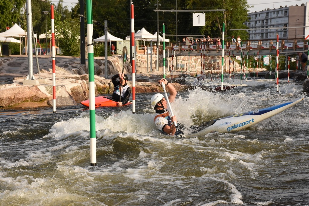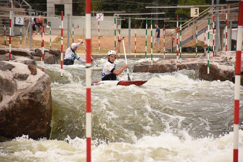 Un parcours en eau vive jalonné de portes suspendues où précision, lecture du courant et vitesse font la différence. Le moindre centième de seconde peut décider du podium.
