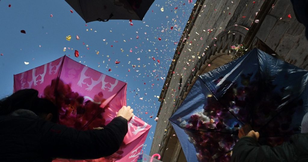 Le Carnaval Vénitien a également fait son entrée dans les rues d’Épinal, apportant une touche de poésie et de mystère à la fête, avec ses somptueux costumes et ses masques raffinés. Puis, une messe était célébrée à la basilique Saint-Maurice, suivie d’un lâcher de pétales depuis le beffroi, moment symbolique et toujours très attendu des participants.