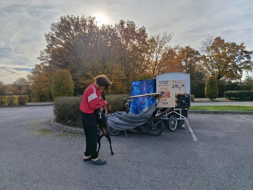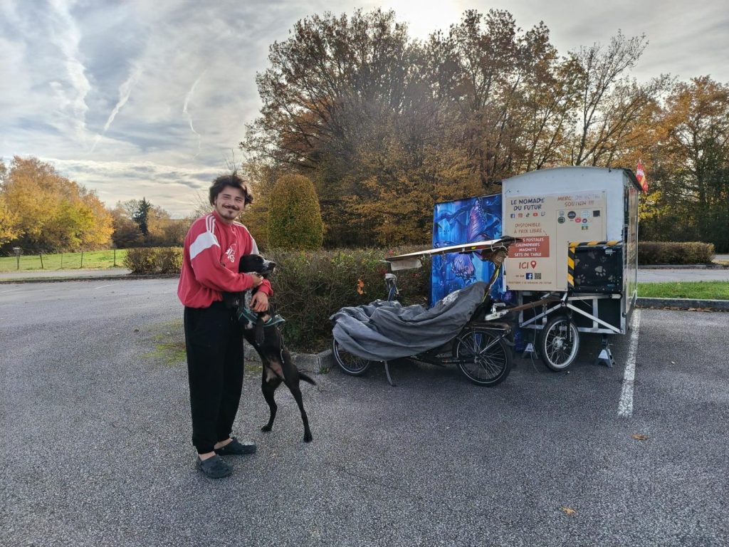 Depuis, il avance à son rythme, sans plan figé, en suivant les opportunités et les saisons. Natchav, son compagnon à quatre pattes, partage chacune de ses étapes, symbole d’une vie en mouvement et en liberté.