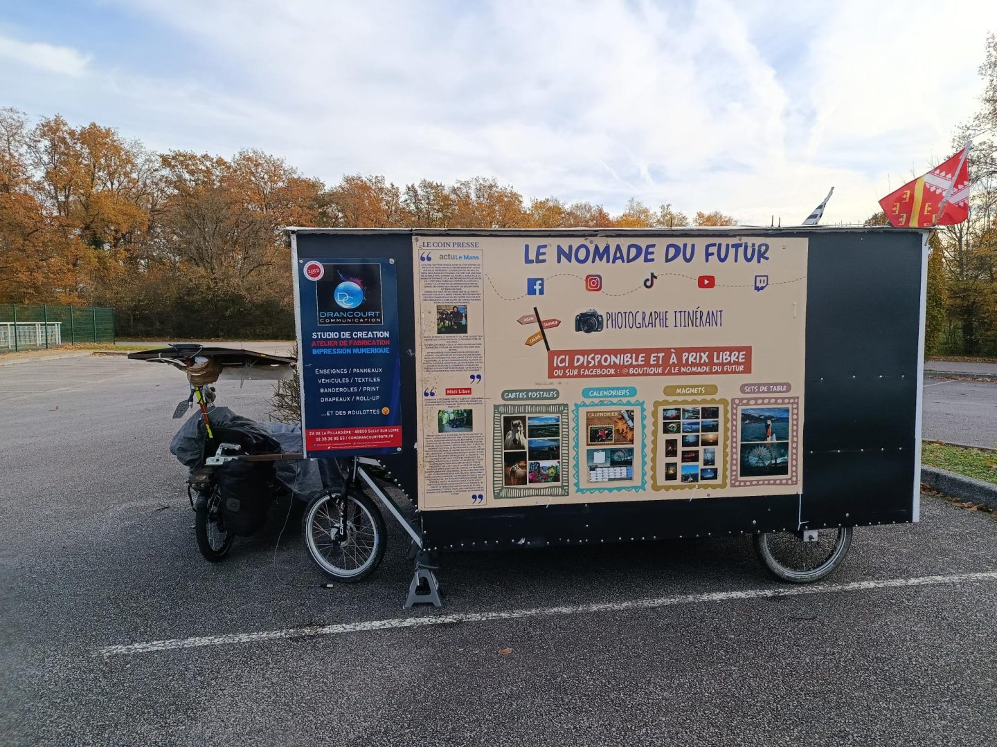 Depuis quelques jours, une silhouette intrigue les passants sur les routes vosgiennes : un vélo couché tirant une petite roulotte colorée. À son bord, Jday, 26 ans, photographe itinérant et aventurier des temps modernes. Accompagné de son fidèle chien Natchav, il sillonne la France depuis plus de dix ans, vivant au rythme du vent, des saisons et des rencontres.