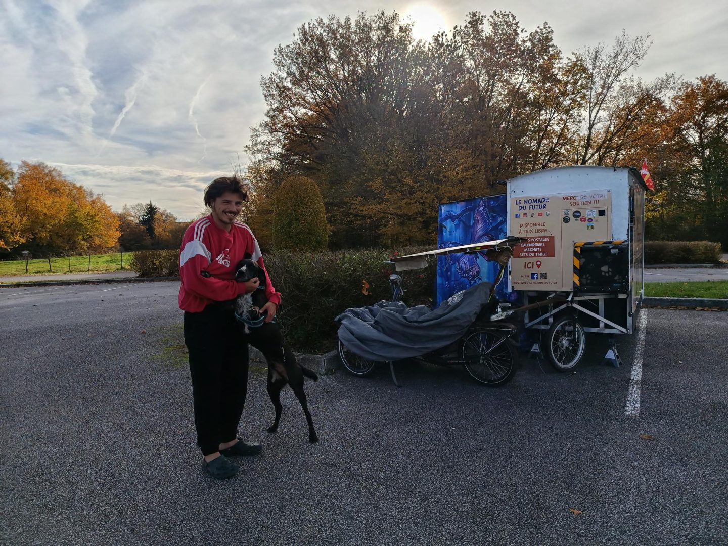 Depuis, il avance à son rythme, sans plan figé, en suivant les opportunités et les saisons. Natchav, son compagnon à quatre pattes, partage chacune de ses étapes, symbole d’une vie en mouvement et en liberté.
