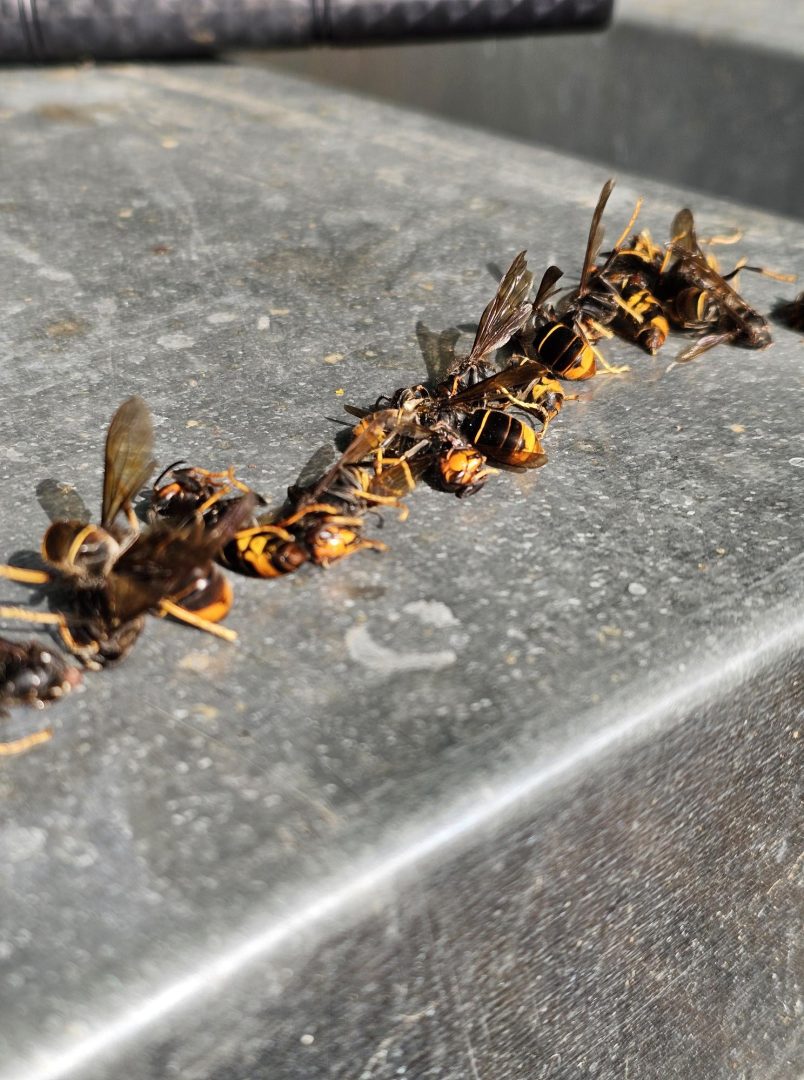 « Dans d’autres régions, le frelon asiatique est présent depuis plus longtemps que chez nous. Là-bas, devant les ruches, ce ne sont pas 10 frelons mais des dizaines. Les abeilles sont en stress, ne sortent plus, et la colonie finit par se laisser mourir. »