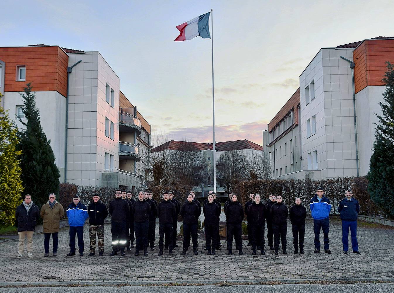 Hier matin, 25 élèves de terminale bac professionnel « Métiers de la sécurité » du lycée Jeanne d’Arc de Bruyères ont vécu un moment solennel et marquant en prenant part à la première montée des couleurs de l’année à la caserne Courcy d’Épinal.