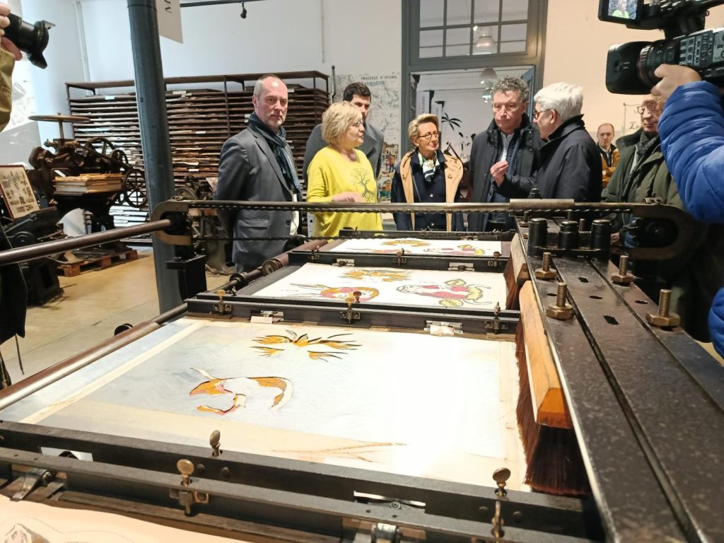 Le président de Région a d’abord découvert l’Imagerie Pellerin, institution emblématique de l’identité spinalienne. Récemment reprise par la Ville d’Épinal, cette ancienne entreprise historique a fait l’objet d’un rachat des actifs et du fonds de commerce, une opération soutenue financièrement par la Région Grand Est. Sur place, les échanges ont porté sur la transmission du savoir-faire, la sauvegarde de ce patrimoine industriel unique et les perspectives de développement du site.