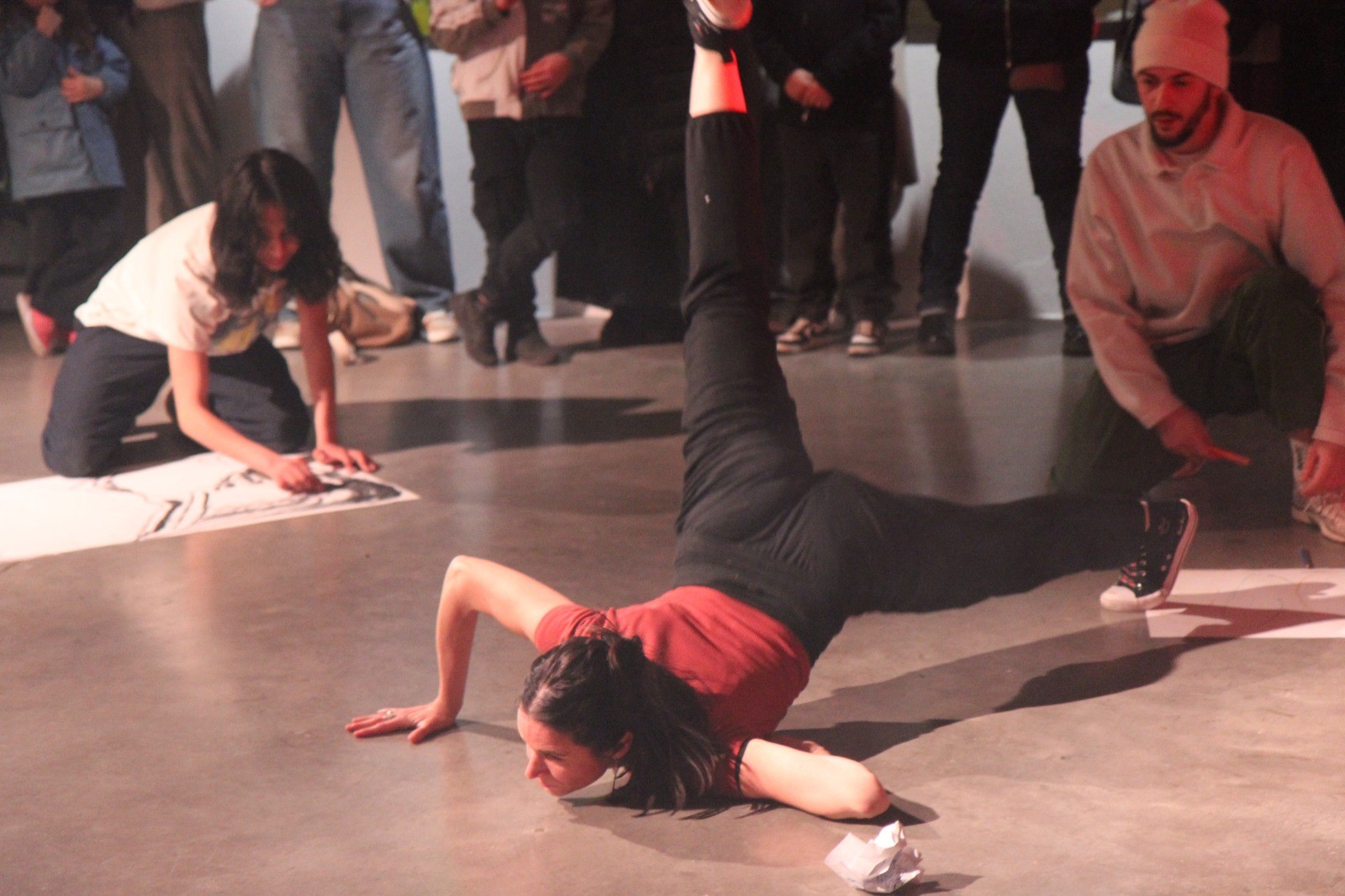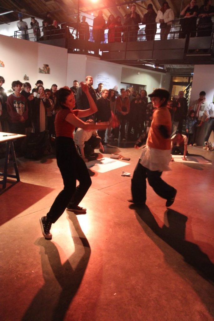 Au cœur de cette soirée inaugurale, une exposition accessible jusqu’au 20 février a dialogué avec une performance musicale et visuelle originale. Les étudiants en arts visuels de l’ESAL ont proposé une création en direct, projetant leurs dessins au rythme des sonorités percutantes et acidulées de Lobo El Cotchel. Le danseur Hamza est venu enrichir ce moment en apportant une dimension corporelle et chorégraphique à l’ensemble.