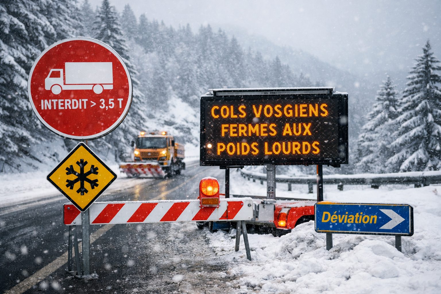 Face aux conditions météorologiques hivernales actuelles et annoncées sur le massif vosgien, le Conseil départemental des Vosges a décidé de restreindre temporairement la circulation des poids lourds sur plusieurs axes de montagne.