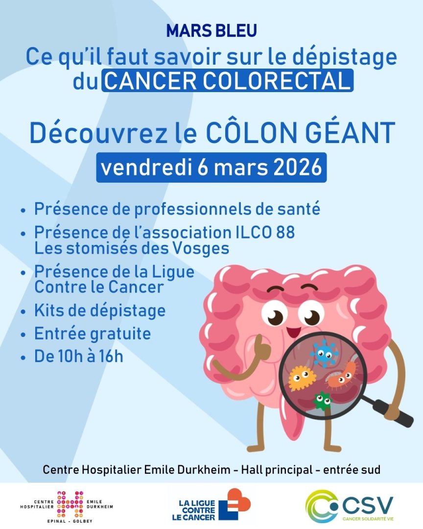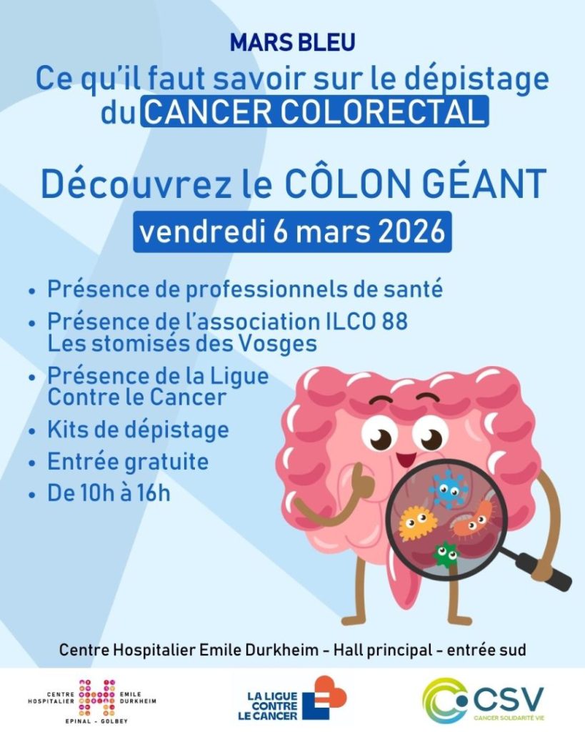 Le 6 mars prochain, une journée dédiée à la prévention du cancer colorectal se tiendra au Centre hospitalier d’Épinal. À cette occasion, l’établissement accueillera le célèbre Colon Tour, un outil pédagogique original et interactif destiné à sensibiliser le grand public à l’importance du dépistage.