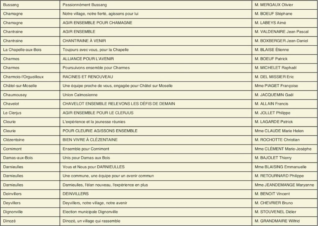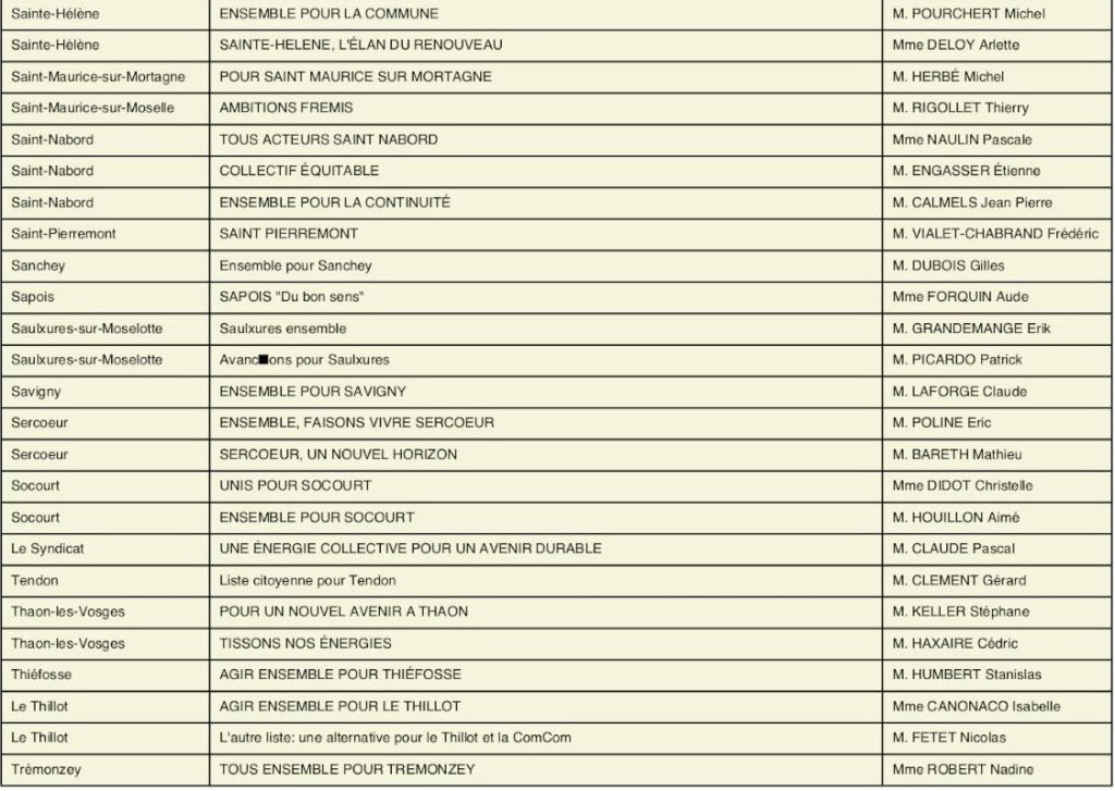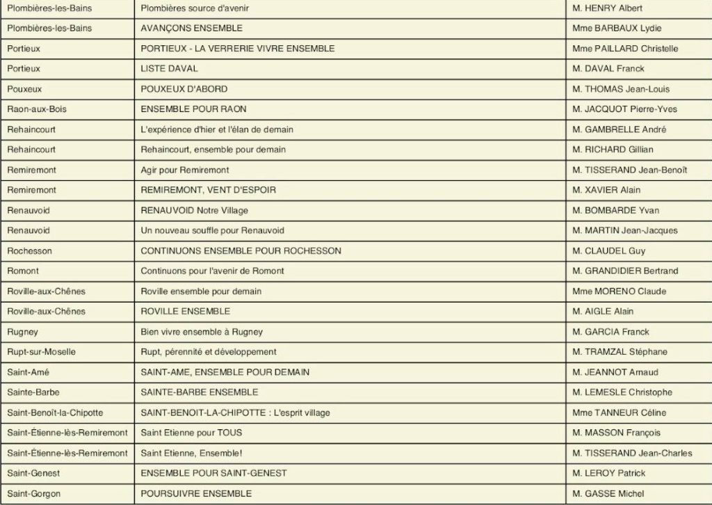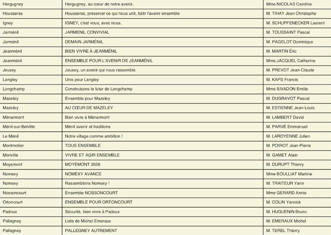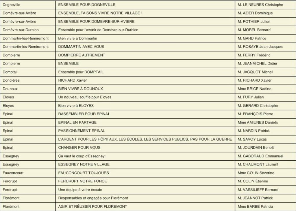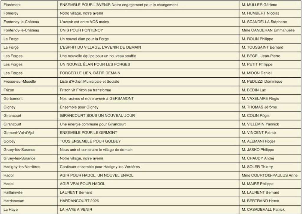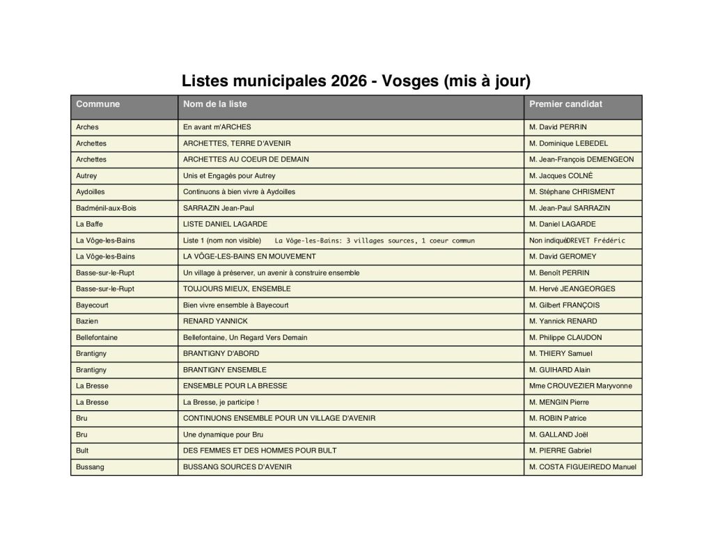 À l’approche des élections municipales et communautaires prévues les 15 et 22 mars 2026, la préfecture des Vosges a rendu public l’arrêté fixant l’ensemble des candidatures enregistrées pour le premier tour dans toutes les communes du département, dont celles de la circonscription d’Épinal.