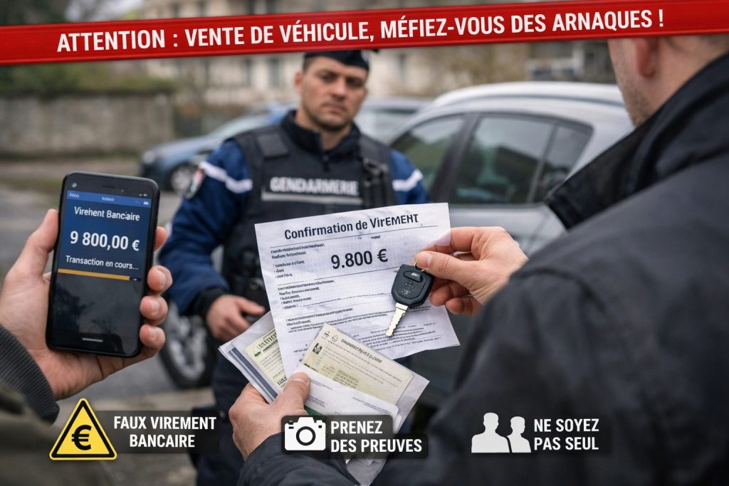Au moment du paiement, les escrocs présentent de fausses preuves de virements bancaires : captures d’écran truquées, faux avis d’opération ou confirmations bancaires falsifiées. Rassuré par ces documents frauduleux, le vendeur remet le véhicule… sans jamais recevoir le règlement.