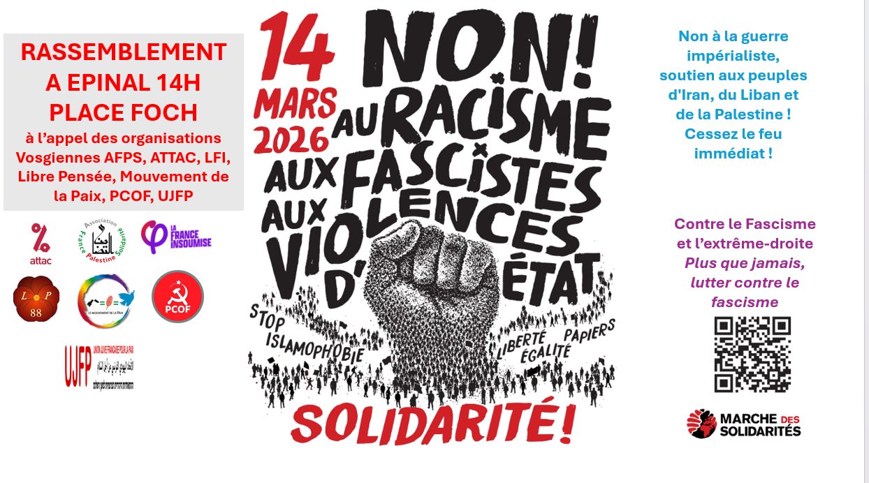 RASSEMBLEMENT à EPINAL /SAMEDI 14 MARS à 14h / PLACE FOCH