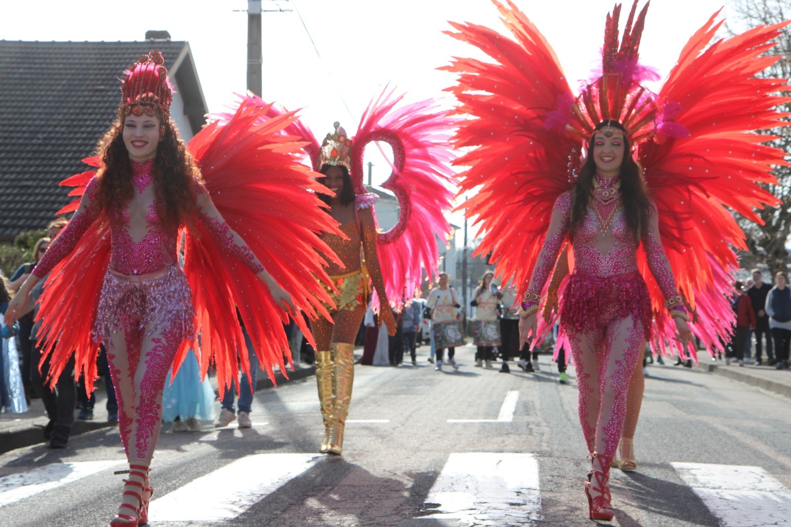 Une fois lancé, le défilé a parcouru l’artère principale de la commune dans une ambiance festive. Musiques, confettis et bulles accompagnaient les chars et les groupes, parmi lesquels figuraient notamment les danseuses du Carnaval de Rio A Companhia de Cycy. La formation musicale Harmonie et Concorde de Châtel-sur-Moselle a également assuré l’animation sonore tout au long du parcours.