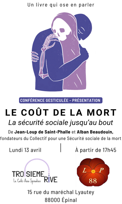 Aux côtés des personnages emblématiques qui jalonnent la longue Histoire de la mort, nous allons essayer de dresser ensemble le portrait du capitalisme funéraire qui est aujourd’hui en place. A nous d’en sortir! Pour rendre la mort à tous, ce soir, nous proposons le retour de la danse macabre. Et pour ce faire, le meilleur des outils : la Sécurité sociale