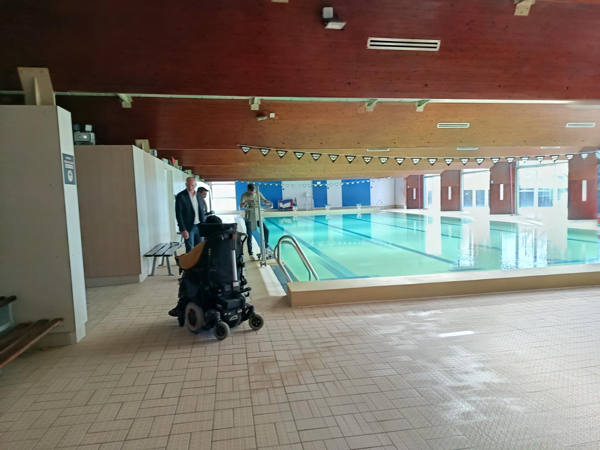 L’un des axes majeurs de ce chantier concerne l’accessibilité. Désormais, la piscine est adaptée aux personnes en situation de handicap grâce à l’installation d’un élévateur, la création de cabines et de sanitaires spécifiques, ainsi qu’un stationnement réservé à proximité immédiate.