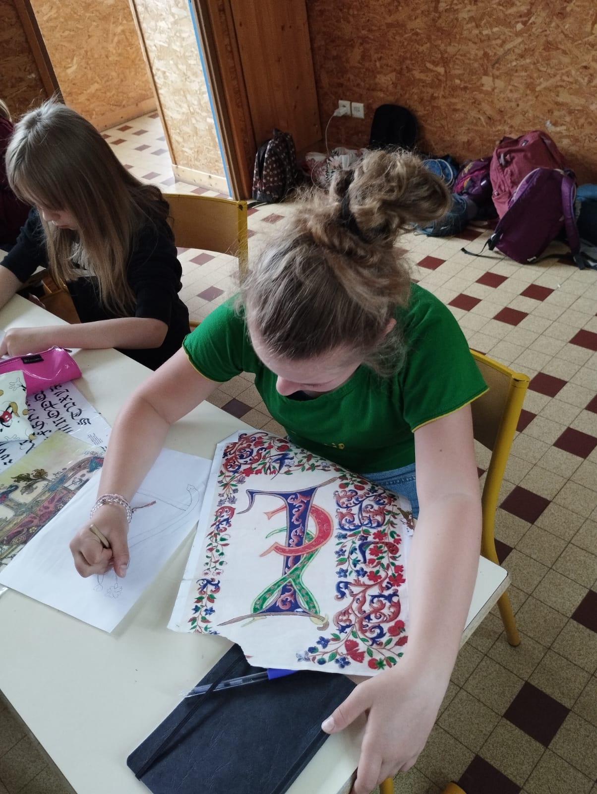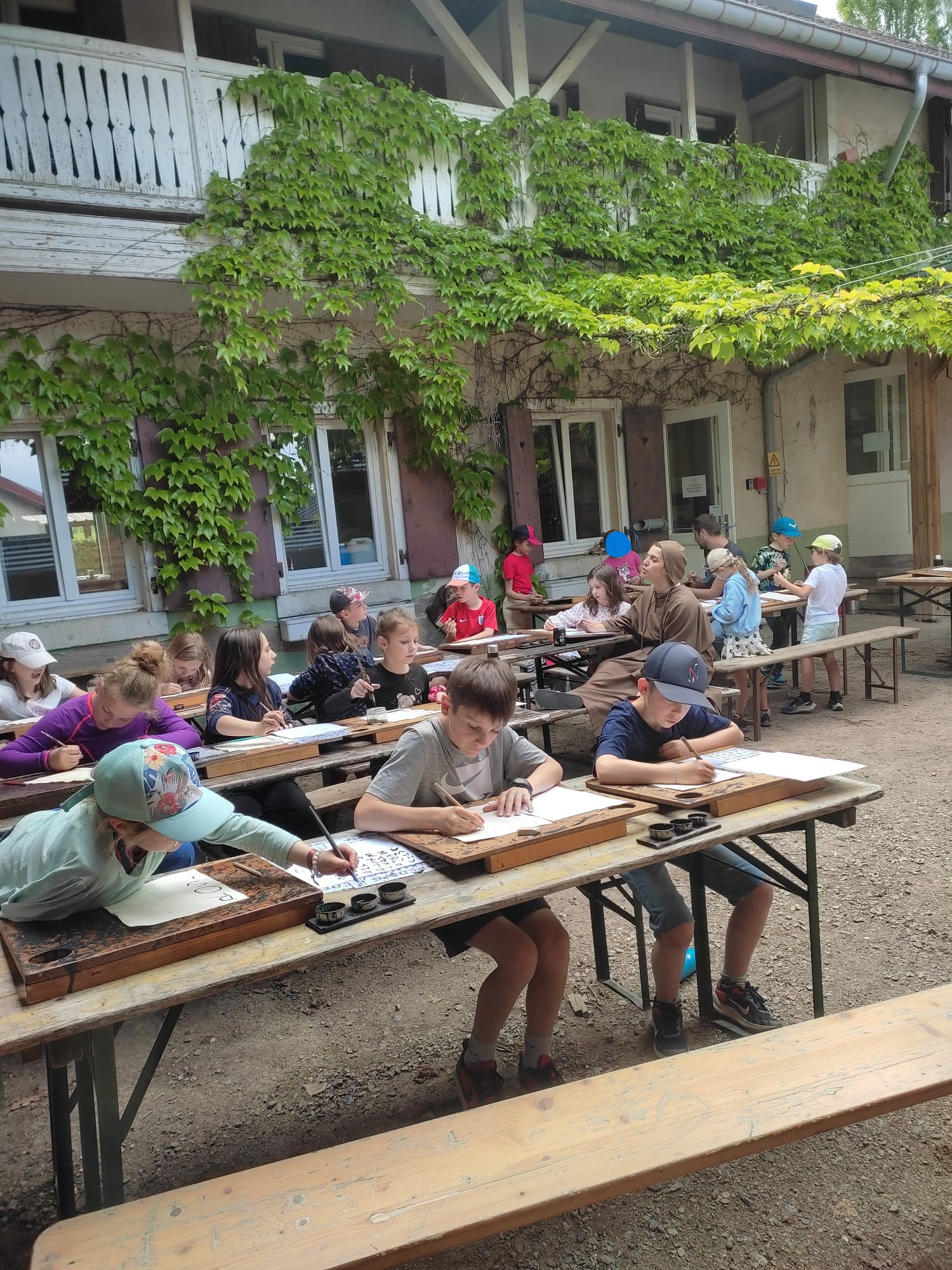 Ce lundi 27 mai, les élèves de la classe de CE-CM de l’école des Bas-Rupts ont pris une machine à remonter le temps pour revenir plusieurs siècles en arrière. Direction le centre ODCVL de la Fermeraie à Luttenbach-près-Munster pour une classe médiévale. Au programme de nos jeunes chevaliers en herbe, visite de la cité médiévale de Munster, découverte de l’héraldique et fabrication de blason, écriture à la plume à la manière des moines copistes, sans oublier une initiation à l’enluminure et à la frappe de monnaie. Grâce à deux personnages tout droits sortis du XIème siècle, Sire Reinardt et Dame Brunehilde, les élèves ont également pu assister à une démonstration d’entraînement du cavalier, à des combats de chevaliers et découvrir comment on vivait à cette époque (vie quotidienne, armures et armes du chevalier). Et cerise sur le gâteau, les enfants ont eu droit, tout au long de la semaine, à une énigme orchestrée par Dame Bérénice, Frère Jean et Sire Drakky qui, envoyés par erreur dans notre temps, cherchaient une solution pour retourner dans leur époque.
