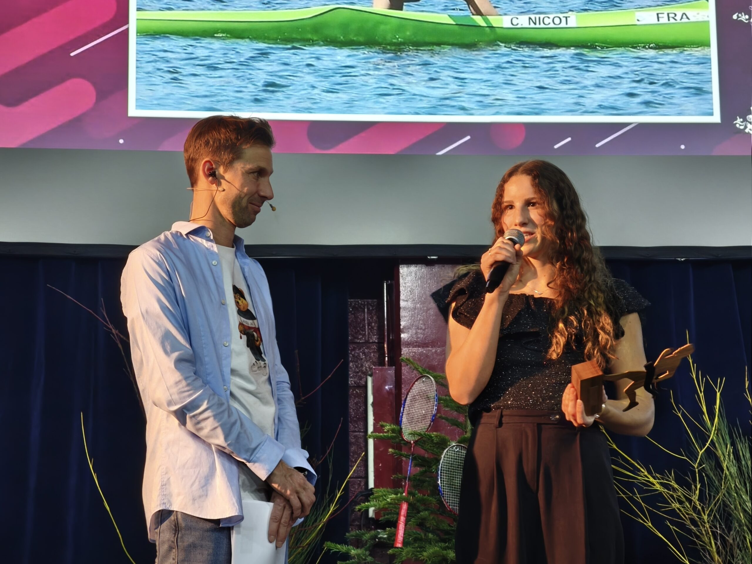 Encore une belle saison pour Chloé qui garde en tête la possibilité de se qualifier pour les prochains jeux de 2028. Elle aura fait briller les couleurs de son club et de sa ville, tout comme certains de ses petits camarades de l’ASG Canoë-Kayak, eux aussi mis à l’honneur. La sportive gérômoise de l’année a partagé le « podium » de la soirée avec le licencié du tennis Club de Gérardmer Baptiste Tusa, meilleur espoir de l’année, Alice Ribau, entraîneuse de l’année, ou encore Chloé Schultz, la basketteuse de l’ASG lauréate du prix du Conseil Municipal des Jeunes. Quant à Suzy Noël, jeune prodige du tennis club, et Johann Mathis, locomotive de Gérardmer Triathlon, il se partage la distinction un peu spéciale des sportifs de haut niveau le plus jeune et le plus âgé !