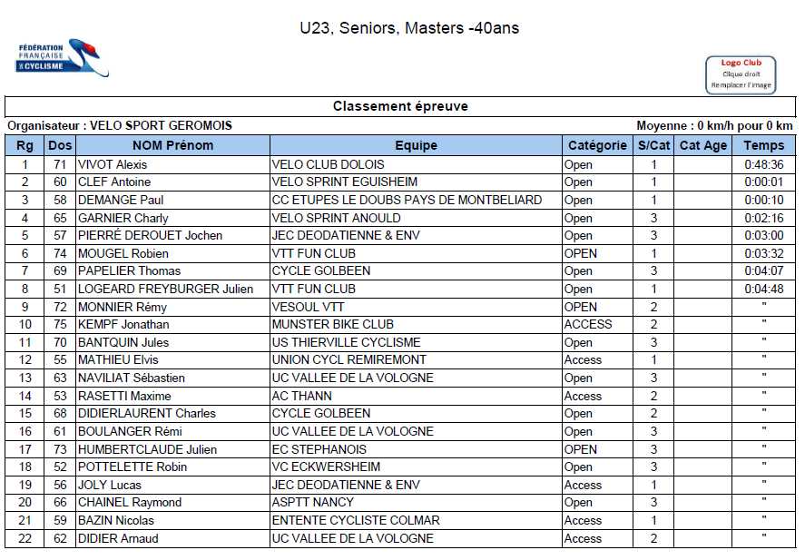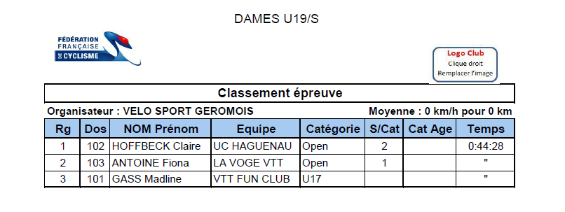 En ouverture, les catégories U9, U11, U13, U15, U17 et U19 se sont succédé sur le circuit, offrant de belles passes d’armes et un bel aperçu de la relève. Chez les juniors (U19), c’est Caliste Chainel qui s’est imposé avec brio, confirmant tout son potentiel. Enfin, chez les dames/U19, Claire Hoffenbeck (UC Haguenau) s’impose face à Fiona Antoine (La Voge VTT) et Madline Gass (U17 – VTT Fun Club).