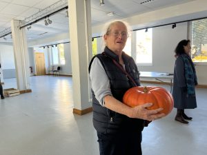 Cette année c’est une belle citrouille de 5,250 kg qui était en jeu à la tombola dont il fallait donner le poids et c’est Christiane Colnel qui s’en est approchée le plus en annonçant 4,830 kg et la remportée. Et avant de laisser repartir chacun vers son jardin, l’association a offert un goûter avec des gâteaux confectionnés par ses bénévoles et des jus de fruits pour prolonger ce moment de partage.