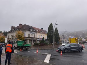 Ce mardi matin, vers 11 15 ., les secours sont intervenus sur un accident de la circulation survenu au cœur de la cité entre un véhicule de la ville avec à son bord le conducteur et un passager. Le camion léger venant du boulevard Kelsch pour se prendre au monument aux morts a percuté une voiture remontant la rue François Mitterrand. Le choc fut violent engendrant heureusement des blessés légers. L’intervention rapide de la police municipale a permis de sécuriser les lieux,. L’intervention des sapeurs pompiers a été menée par le lieutenant Jérôme Berrier .