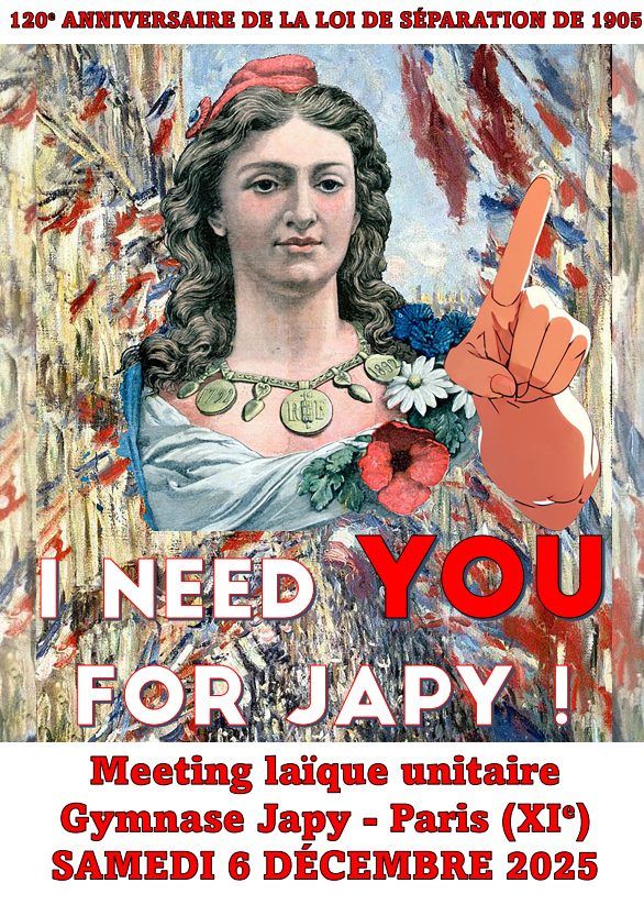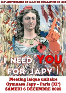 La Fédération nationale de la Libre Pensée a pris l’initiative de réunir au Gymnase Japy à Paris le 6 décembre 2025 tous ceux qui veulent défendre la laïcité. C’est d’autant plus nécessaire qu’aujourd’hui les ennemis de la liberté de pensée font la promotion d’une laïcité galvaudée, falsifiée, frelatée.