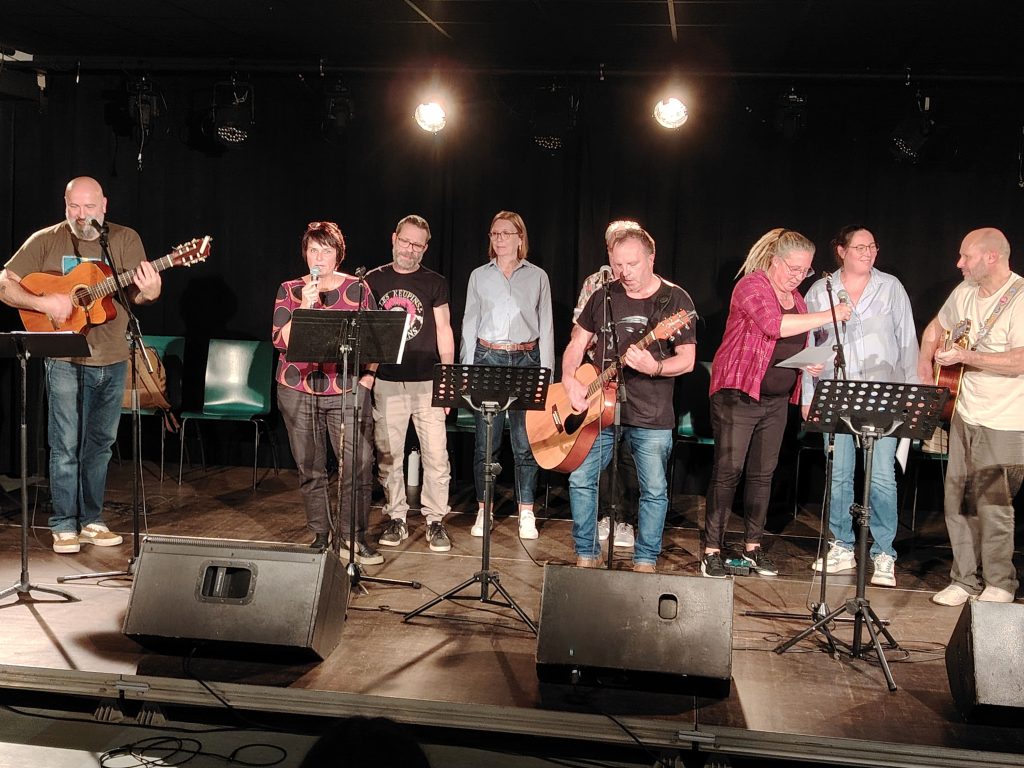 Dimanche, c’est devant un public curieux et chaleureux que les apprentis auteurs-compositeurs ont présenté leurs œuvres. Après les traditionnelles balances effectuées avec Jean-Michel Grosdidier, le « radio crochet » a pu commencer. Le public avait même la mission d’élire sa chanson préférée parmi une belle palette de titres : La Messe, Les Billes, Linda, Les Pinceaux dans le tapis, Il roule, et bien d’autres encore.