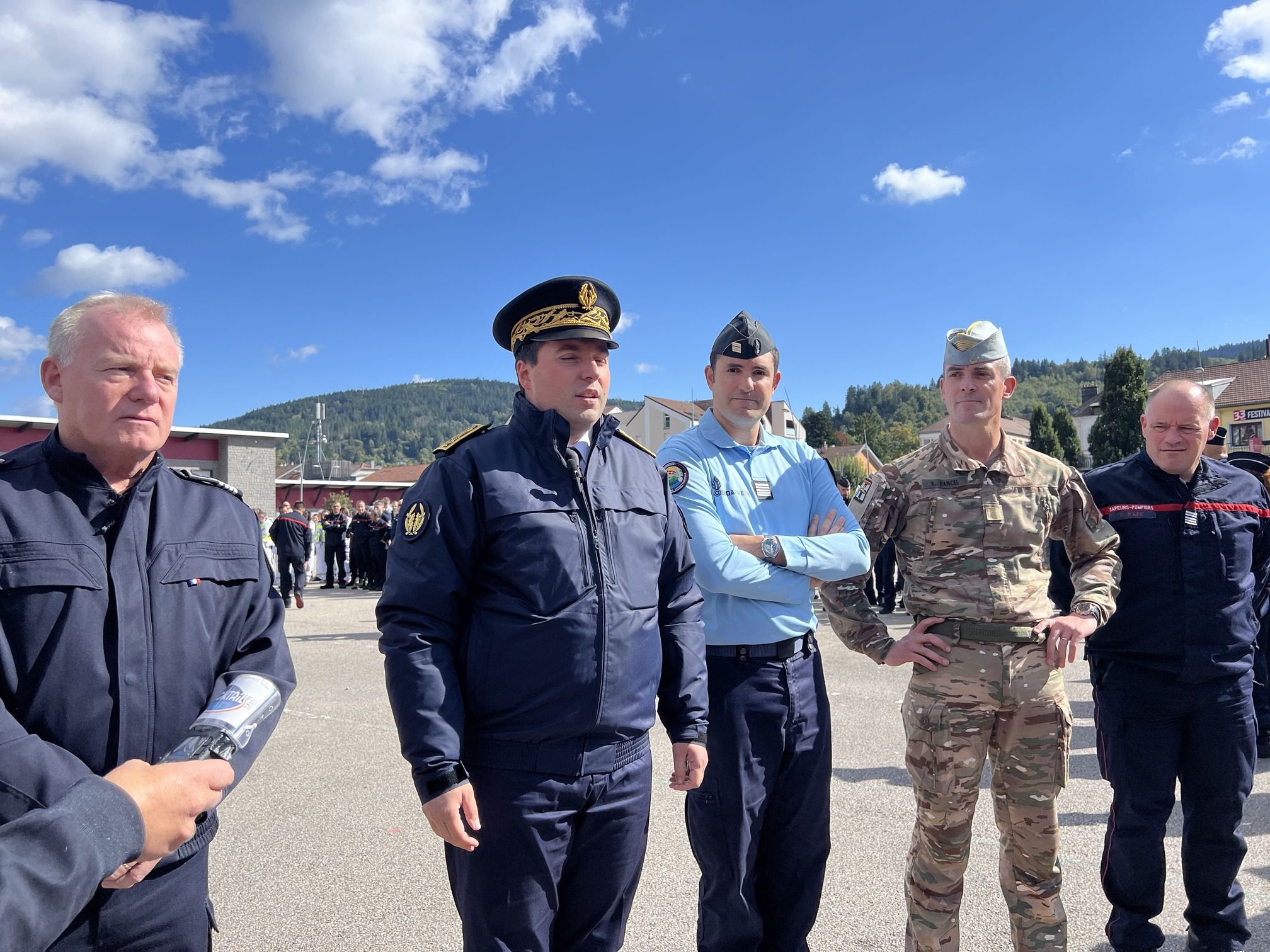 Ce mercredi 1er octobre, le Sous Préfet des Vosges de l’arrondissement de Neufchâteau et chef des opérations Nicolas Gaillard a mis en place un Exercice NOVI VOSGES 2025 – plan d’urgence pour secourir un nombre important de victimes dans un même lieu. pour cela, il a réuni 300 participants des différents services des forces de sécurité place des Déportés à Gérardmer, prêts à intervenir à la Haie Griselle où quelques civiles jouaient le rôle des victimes.