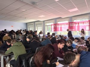 Le proviseur David Sage, après avoir présenté la championne du jour, s’est allié à la CPE Emmanuelle Menet pour parler de l’association Ela et de la leucodystrophie s’appuyant sur une courte vidéo, le but est « que les élèves comprennent le sens de ce qu’ils font, ils vont s’inscrire dans un parcours citoyen » expliquait le proviseur. Pour des élèves de lycée professionnel « la dictée est un défi qui va leur demander un effort » ajoutait-il, comme dans les valeurs du sport où l’on retrouve dépassement de soi et solidarité. Certains élèves ont reçu des textes aménagés. L’adjointe à la culture Anne Chwaliszewski, qui siège également au conseil d’administration du lycée, a remercié « l’établissement de s’inscrire dans ce dispositif littéraire et solidaire et Chloé Nicot qui donne de son temps ». Et pour compléter cette journée sous le signe d’Ela, le professeur d’EPS Etienne Ruaux a invité les internes à rejoindre un défi sportif en soirée au gymnase Pierre et Paul Didier. Une quarantaine d’élèves sont concernés, ils participeront à un parcours chronométré avec 10 ateliers de tirs et lancés. Les 3 meilleurs se verront récompensés.