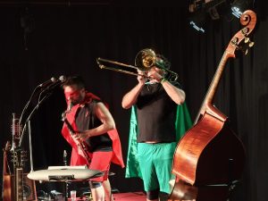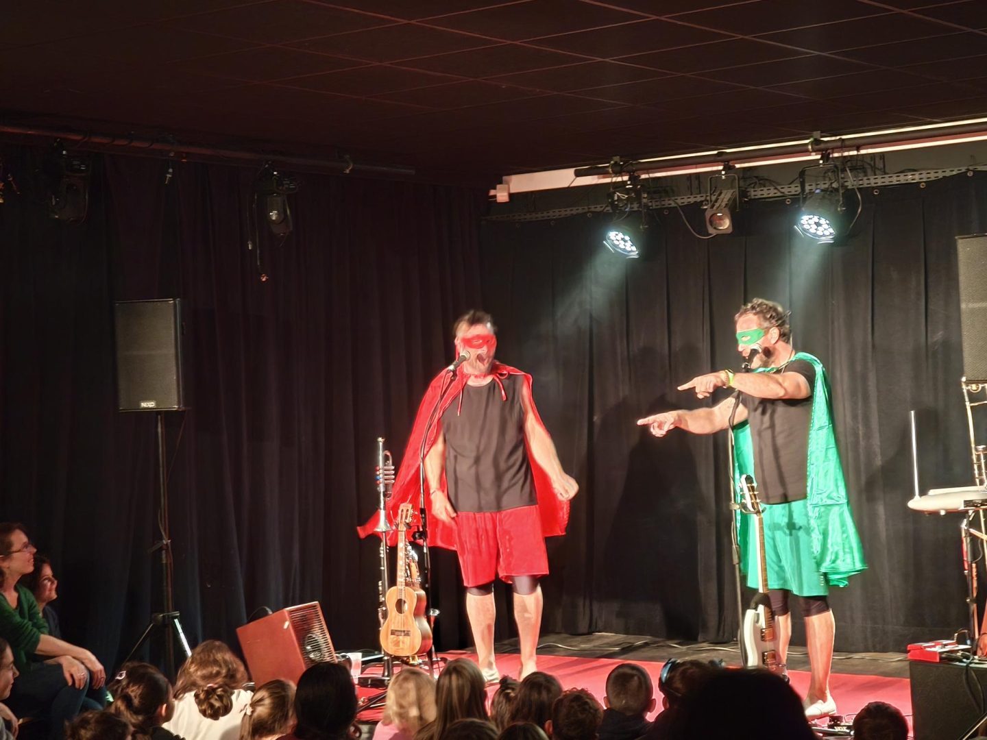 Le festival du film jeune public bat son plein et les animations proposées autour de Graines des Toiles ont toujours autant de succès, surtout avec la météo qui pousse à se mettre bien au chaud, à l’abri du vent et de la pluie. Mercredi après-midi, le foyer-bar était plein comme un œuf pour le concert un peu déjanté de Super Gamma et Super Bêta – opération ratatouille, proposé en collaboration avec les Secteurs famille et musiques actuelles de la MCL. Un voyage musical, intersidéral et plein d’humour partagé par des cinéphiles locaux et des vacanciers qui ont particulièrement apprécié ce spectacle multigénérationnel.