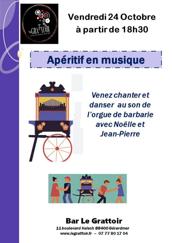 Vendredi 24 octobre, le bar le Grattoir vous propose un apéritif en musique au son de l’orgue de barbarie.