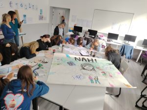 Le temps fort de la matinée fut sans conteste l’intervention de Cayu, gringeaud et artiste, qui a dirigé un atelier d’expression artistique avec les délégués de classe et les membres du Conseil de Vie Collégienne. Ensemble, ils ont réalisé une grande fresque collective, véritable synthèse de cette journée riche en échanges. L’affiche mêle mangas, collages et messages positifs comme “Chacun est comme il est” ou “Il est important de s’accepter les uns les autres” .