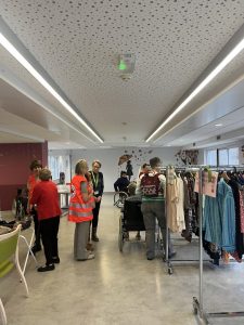 Une façon d’aller à la rencontre des résidents en créant un évènement inhabituel  qui conjugue pour ceux-ci l’agrément d’échanger et  l’opportunité de rénover, juste avant les fêtes de noël, leur garde-robe.