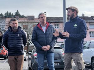 Il s’agit du clone du tilleul qui avait dû être coupé il y a 7 ans et qui, grâce au travail des pépiniéristes de Roville-aux-Chênes qualifié de « chirurgical » par son responsable Florian Vely, devient aujourd’hui le nouveau tilleul de la place. La sculpture du tronc est conservée, l’ancien et le nouveau se côtoieront. « Ce nouveau tilleul est un symbole à transmettre aux générations futures, planté le jour de la libération de Gérardmer en 1944 » énonçait le maire. L’adjoint à l’écologie et au développement durable Grégory Bonne a, quant à lui, retracé l’historique de l’arbre, déjà présent dans des écrits au XVI siècle, qui a résisté aux tempêtes et aux guerres. « En replantant ce jeune arbre nous renouons le fil momentanément interrompu ». dit-il. En 2015 l’INRA a prélevé des graines, en 2019 le tilleul a été cloné, un seul individu a survécu à la sécheresse de 2022, il a permis la renaissance du tilleul en cette année 2025. « Ce greffon est un héritage. Le patrimoine vivant de Gérardmer. » soulignait-il.