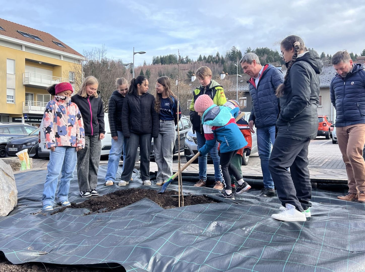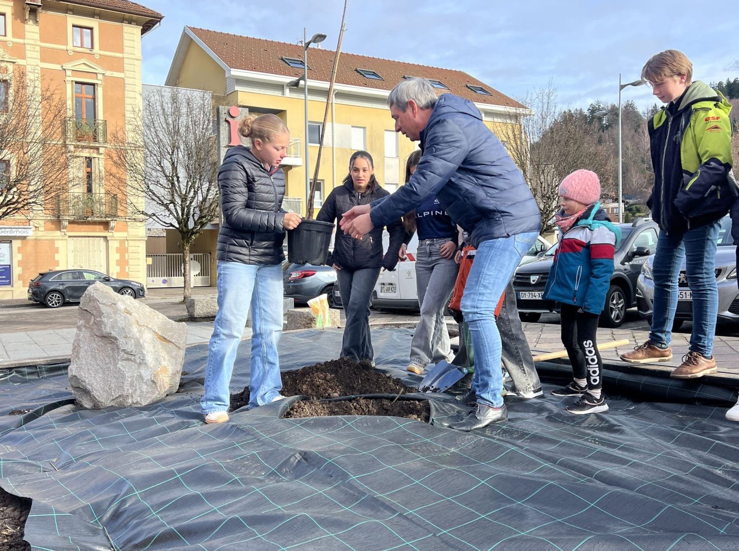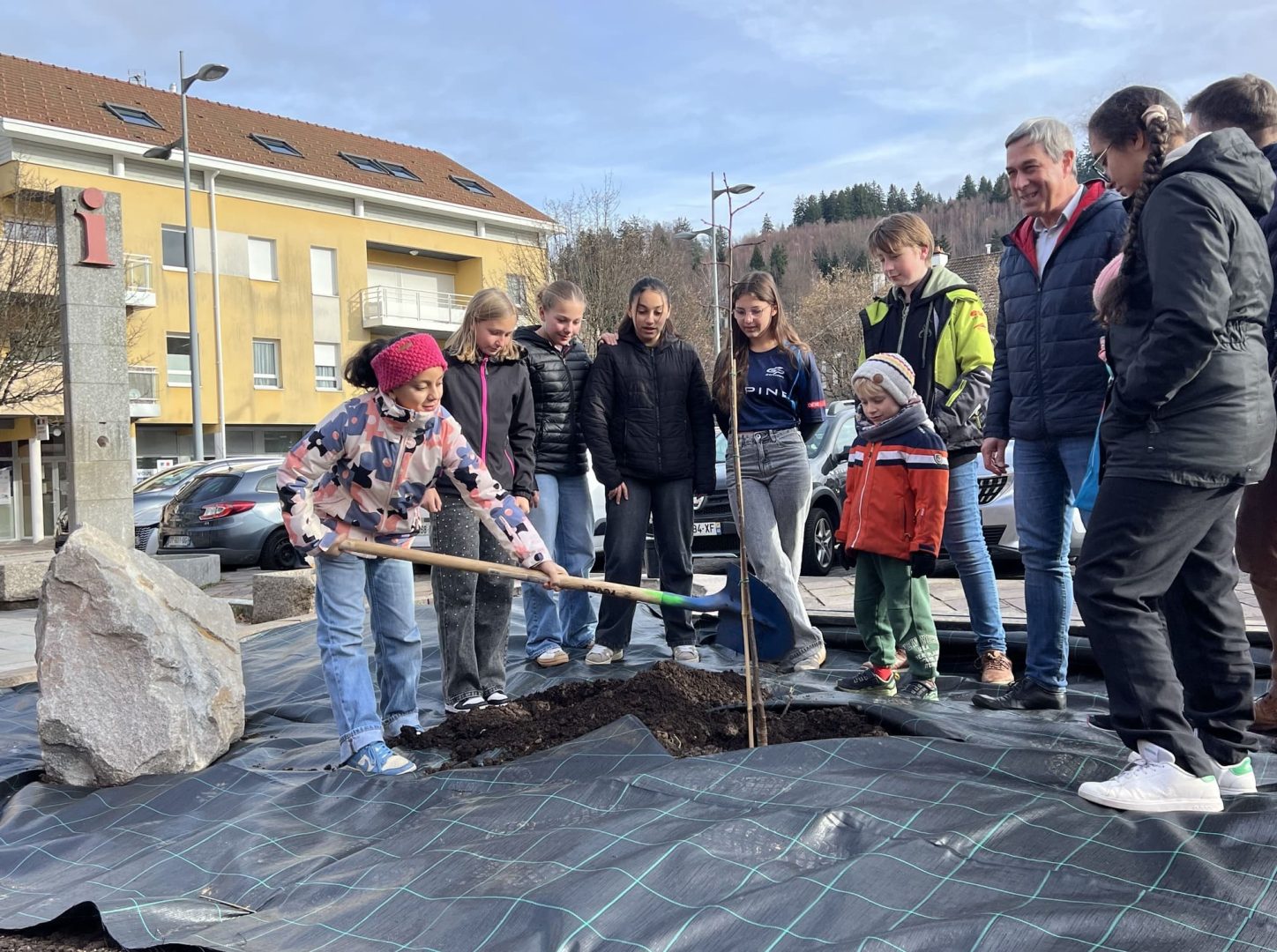 Le maire Stessy Speissmann Mozas, ses adjoints, les services des parcs et jardins et de la communication ainsi que le conseil municipal des jeunes avaient invité les Gérômois à assister à l’événement. Les élèves du périscolaire de l’école Marie-Curie participaient également à la cérémonie en présentant un panneau qu’ils ont réalisé sur l’histoire du tilleul. Chacun a donné un coup de pelle pour la mise en terre de l’arbuste.