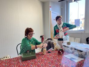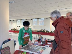 Les bénévoles de l’association proposent des objets de décoration, des biscuits de Noël ou des cadeaux à mettre sous le sapin, tous fait-main par les bénévoles ou les résidents. Ils ont également reçu des dons de particuliers pour compléter l’offre. Quelques nouvelles personnes se sont jointes cette année à la vingtaine de bénévoles qui a œuvré pour garnir les stands de ce marché. De son côté l’animatrice de l’Ehpad Marie-Christine Cancian a organisé deux ateliers créatifs en décembre avec les résidents et certains bénévoles. Et pour la première fois l’accueil de jour de l’Ehpad et son animatrice Tiffany Toussaint ont souhaité participer en réalisant de beaux sujets décoratifs. Première aussi pour l’atelier mis en place par Marianne Genatio au cœur du marché : une démonstration de Diamond Painting où elle réalise cadres et cartes de vœux.