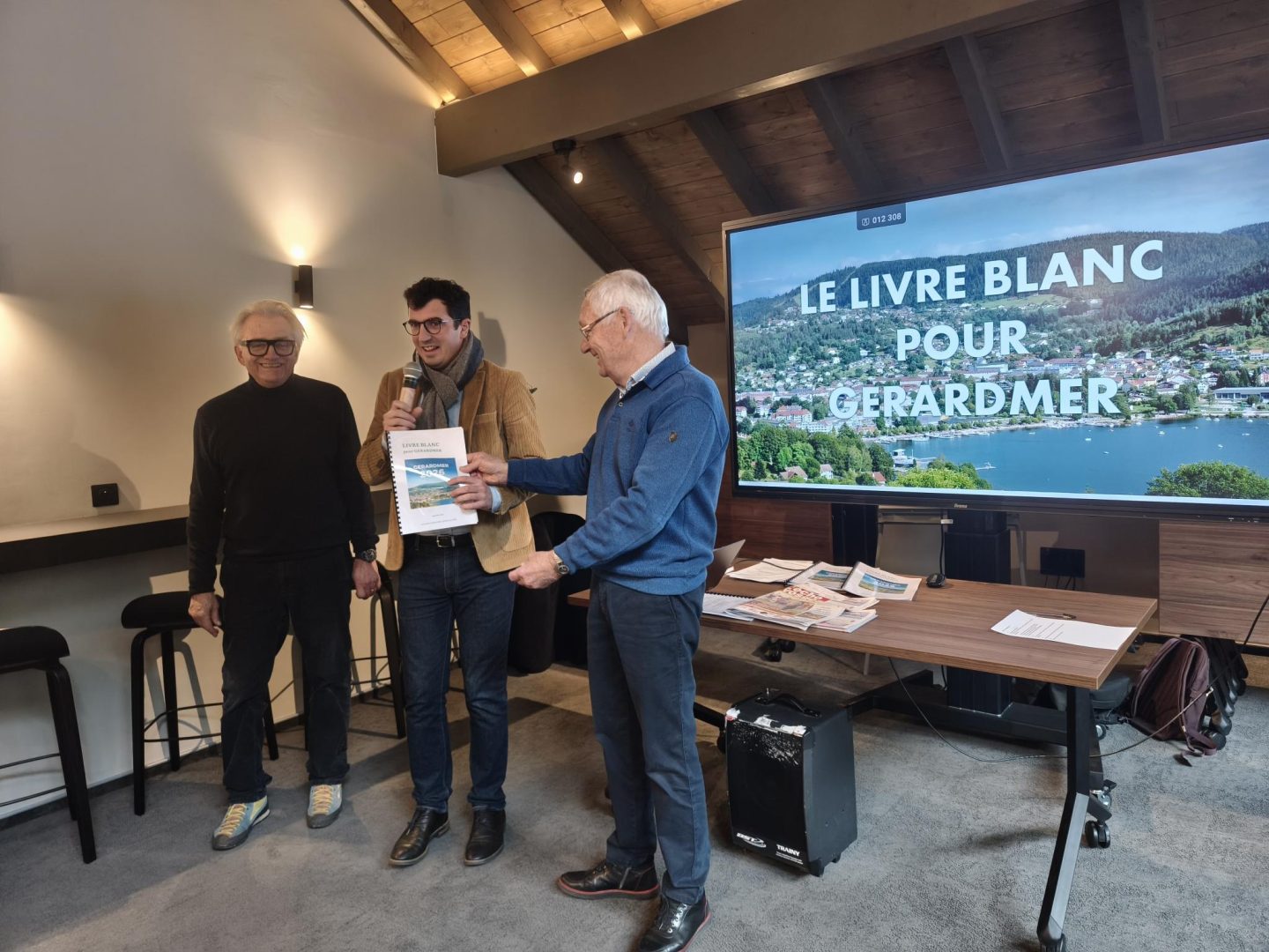 En préambule de la remise du livre, Jean-Louis Antoine et Jacques Valentin ont brièvement rappelé les objectifs de « Gérardmer 2026 », démarche apolitique, désintéressée, entreprise avec humilité et assez inédite au niveau national : donner la parole à celles et ceux qui ne la prennent pas ou peu, faciliter le travail aux futurs candidats qui recherchent des profils pour intégrer le groupe/liste, enrichir les programmes avec des propositions des Gérômois recueillies notamment à travers un site internet, une page Facebook, des rencontres et des réunions publiques sur différents thèmes. Le résultat de ce travail, c’est donc ce livre blanc de 36 pages disponible en ligne et qui était remis ce jeudi afin de finaliser le projet.