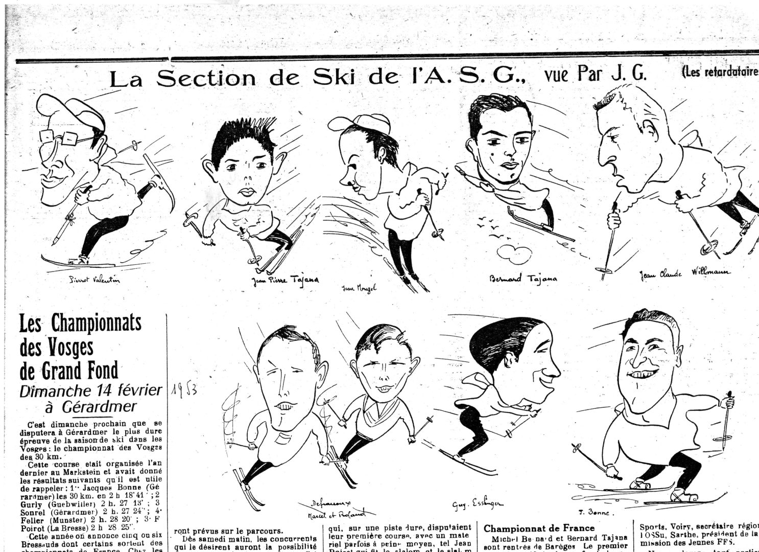 - Caricature des skieurs par Jean Grossier, avec notamment Jean-Pierre et son frère Bernard.