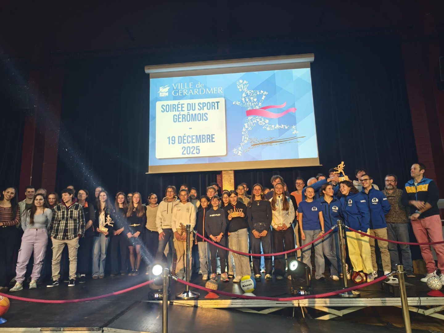 Mais revenons-en à nos champions : à nouveau réunis sur scène, Jérôme Jan et Maxime Laheurte ont eu le plaisir d’accueillir et de tendre le micro à celles et ceux qui font briller les couleurs de Gérardmer et parfois même de la France grâce à leurs exploits sportifs, le tout sans oublier les fidèles bénévoles, « car sans eux, il n’y aurait rien ! » a rappelé Benoît Bastien. C’est entre autres pour cela que les premiers récompensés furent deux illustres bénévoles : Jacqueline Picart (Athlé Vosges) et Christian Martin (ASG ski nordique). De nombreux autres sportifs et sportives se sont succédé(e)s, seul(e)s ou par équipe, prouvant à nouveau que le réservoir gérômois est quasi inépuisable, sur terre, dans l’eau et même sur la neige. Mais ce sont surtout les trophées qui étaient attendus, voici le palmarès 2025 :