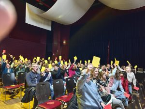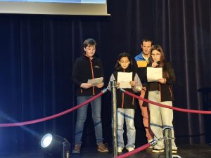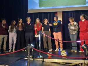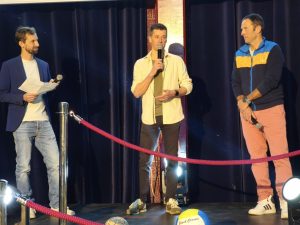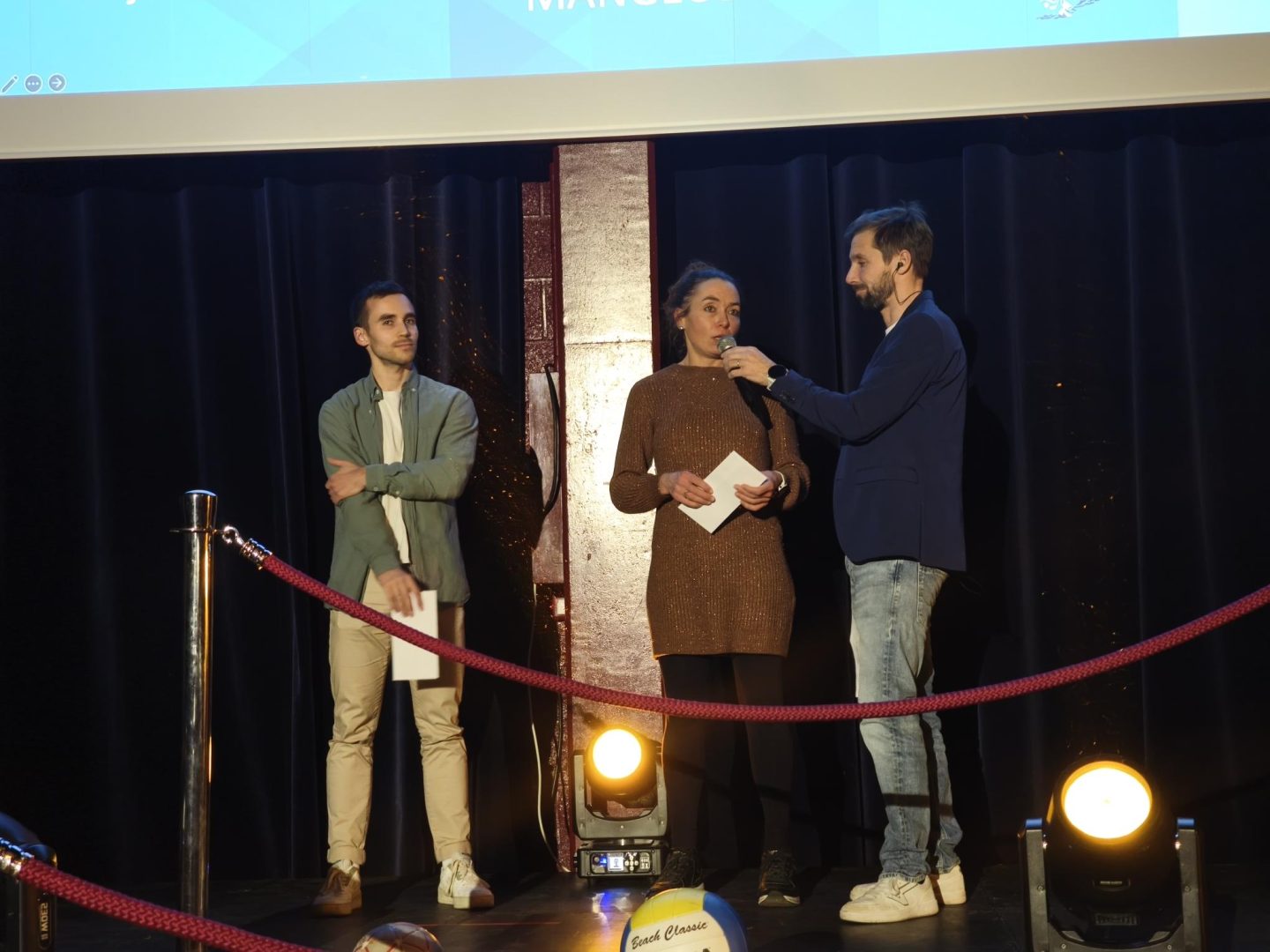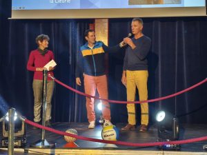 Un bel invité d’honneur et une belle surprise pour le public présent, ravi de participer à ce moment fort de la vie locale, mais aussi « un choix fort et nécessaire », pour reprendre les mots de Stessy Speissmann Mozas : celui d’inviter un arbitre, élément indispensable à toute rencontre sportive, une figure qui représente le respect des règles et de l’adversaire, le respect des décisions indispensables au bon déroulement de toute compétition qui se respecte. Et pour mettre une touche pédagogique et ludique à la soirée, Benoît Bastien avait même apporté avec lui ses cartons afin de rythmer les différentes remises de prix par des petites mises en situation où le public était amené à endosser le rôle d’un arbitre assistant, puis d’un arbitre central. Une expérience particulièrement enrichissante qui a permis d’en savoir plus sur le rôle d’un arbitre, la prise de décision et les enjeux d’un coup de sifflet.