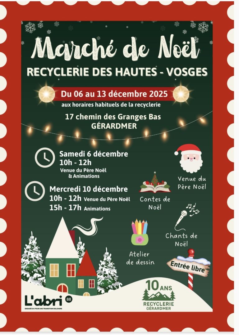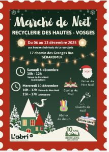 Samedi 6 décembre dernier a eu lieu l’inauguration du Marché de Noël Solidaire à la Recyclerie des Hautes Vosges l’Abri (Association d’intérêt général à vocation sociale) de Gérardmer.