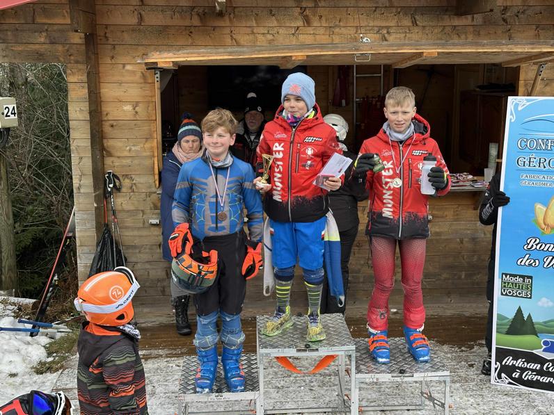 Du côté des garçons, chez les U8, c’est double podium pour deux petits gérômois, félicitations à Côme DEFAY qui remporte la 1ère manche puis se classe 3ème en 2ème manche, et à Tim BENDJEDIA 3ème puis 2ème, à Luca COLIN qui termine à la 2ème place en première manche. Léo REMPP ne démérite pas en se classant 5ème puis 4ème. Chez les U10, bravo à Sacha DEFAY, vainqueur de la 1ère manche, puis 4ème, belle place également pour Nao BENDJEDIA 3ème en 1ère manche. Matti LAHEURTE termine 10ème en manche 1, Timothy COLIN 9ème en manche 2. Edgar REMY 12ème puis 11ème, Auguste BARADEL 16ème puis 15ème, Axel ROCHE 18ème, puis 16ème et Arthur BONNE 22ème en 1ère manche. Enfin, chez les U12, Eliott CORNIL se classe 11ème et 14ème, Marius REMY 13ème puis 15ème, Charli MASSON 4ème puis 18ème, Matthias CHEVRIER 17ème et 22ème et Ewen HENRY 23ème puis 25ème.