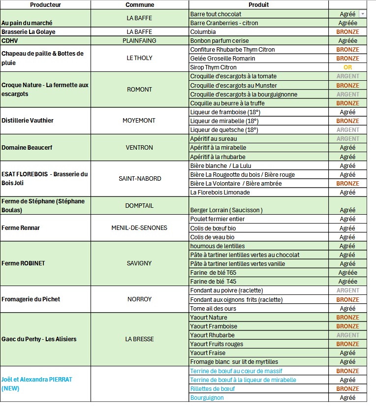 À l’issue des délibérations, de nombreux produits ont obtenu le précieux agrément « Je Vois la Vie en Vosges Terroir », certains étant également distingués par des médailles d’or, d’argent ou de bronze. Ces reconnaissances attestent du respect des critères du label : origine vosgienne, qualité gustative, authenticité et engagement des producteurs.