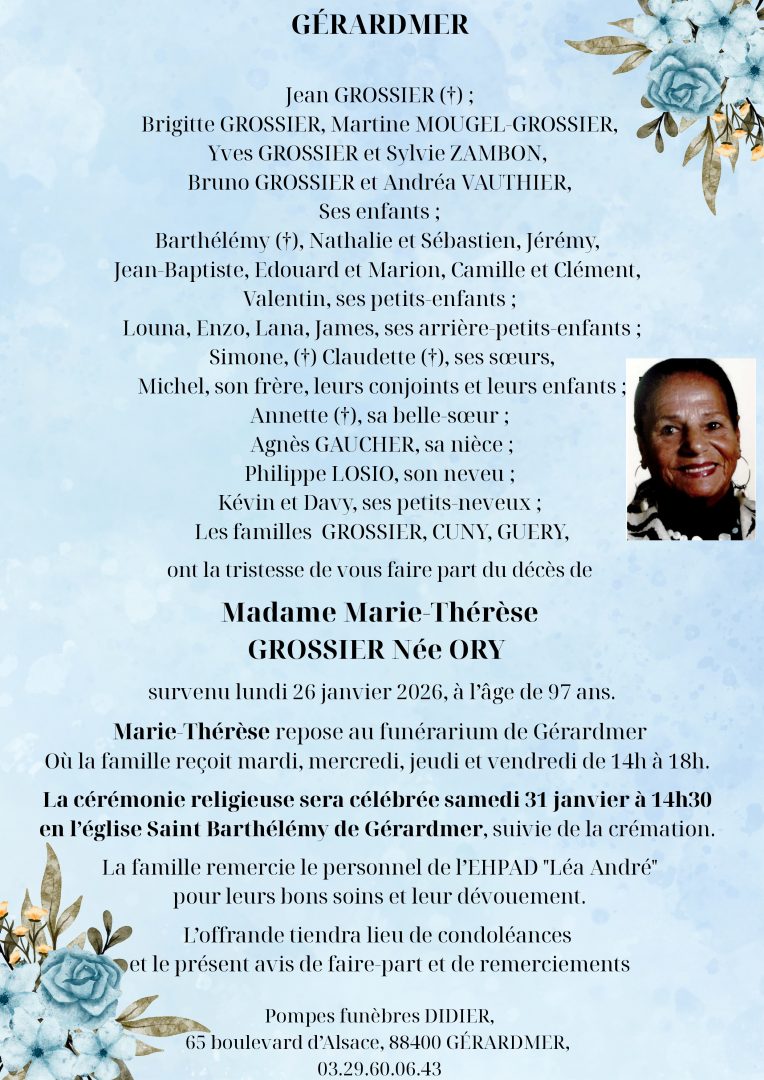 Nous présentons toutes nos condoléances à la famille Grossier.