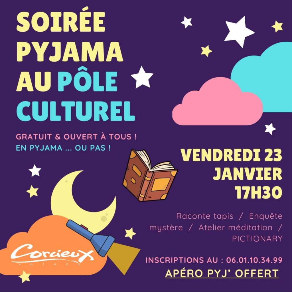 Le Pôle culturel de Corcieux organise une soirée pyjama le vendredi 23 janvier, de 17h30 à 20h, dans le cadre des Nuits de la lecture. Le rendez-vous est gratuit et ouvert à tous.