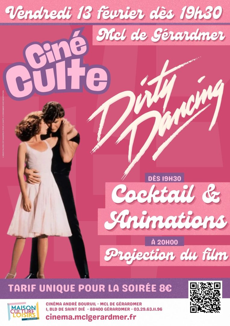 Au programme : une ambiance musicale 100% culte agrémentée d’un cocktail et de surprises !20h – Diffusion du film culte « Dirty Dancing » (1h40)