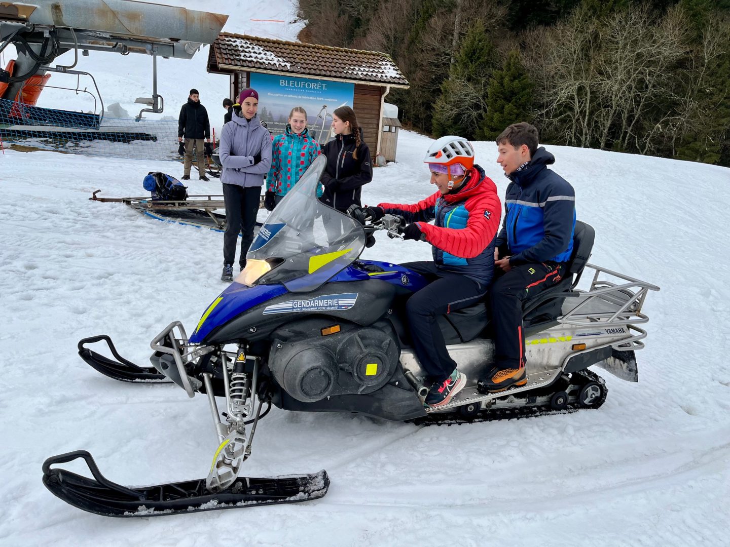Les élèves de la classe montagne du lycée La Haie Griselle et leur professeur d’Éducation physique, pratiques et culture sportives, Nicolas AUBIN, ont récemment pu concrétiser un travail vu en théorie. Travail autour de la prévention des risques et des conduites à tenir en cas d’accident en montagne qu’ils ont ainsi approfondi encadrés par les Gendarmes du peloton de gendarmerie de haute montagne (PGHM) de Xonrupt-Longemer. Recherche de victime d’avalanche, initiation à la moto neige et au quad étaient au programme de cette session en compagnie des Gendarmes. Certaines vocations semblent s’être révélées…