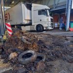 Dans la nuit de jeudi à vendredi, les agriculteurs vosgiens ont déversé des tonnes de fumier et de pneus devant l’entrée des parkings et des portes des supermarchés Super U, Intermarché et Lidl à Gérardmer.