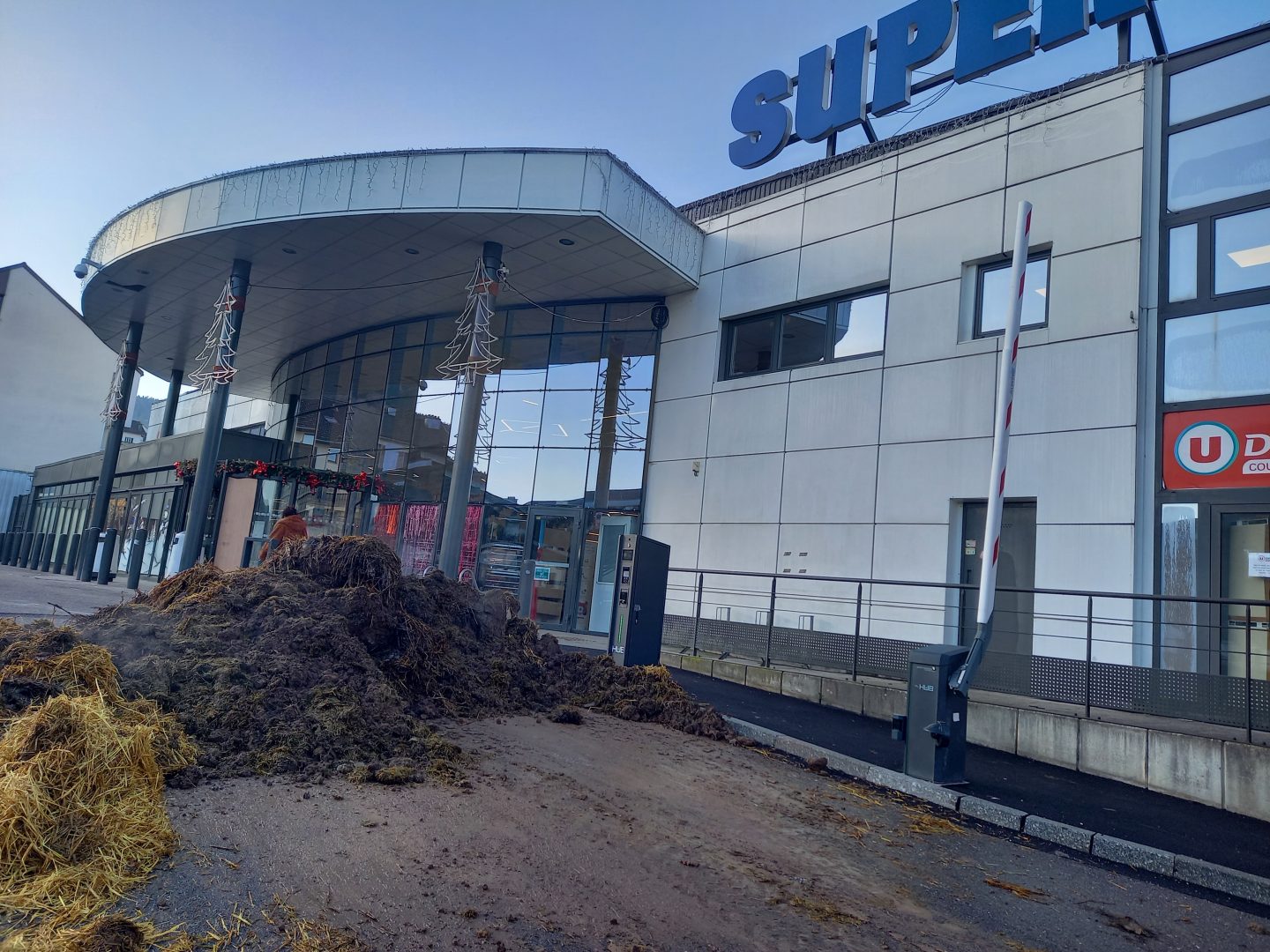 Colère des agriculteurs – Du fumier déversé devant trois supermarchés de Gérardmer