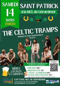 La MCL de Gérardmer accueillera The Celtic Tramps, groupe folk-rock celtique originaire de Nancy, pour une soirée explosive à l’occasion de la Saint-Patrick.