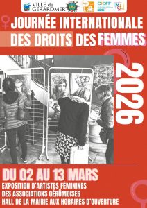 Du 2 au 13 mars, le hall de l’Hôtel de Ville accueillera une exposition consacrée aux œuvres d’artistes féminines issues des associations gérômoises. Peintures, créations plastiques et autres expressions artistiques seront présentées au public. L’exposition est accessible librement pendant les horaires d’ouverture de la mairie.